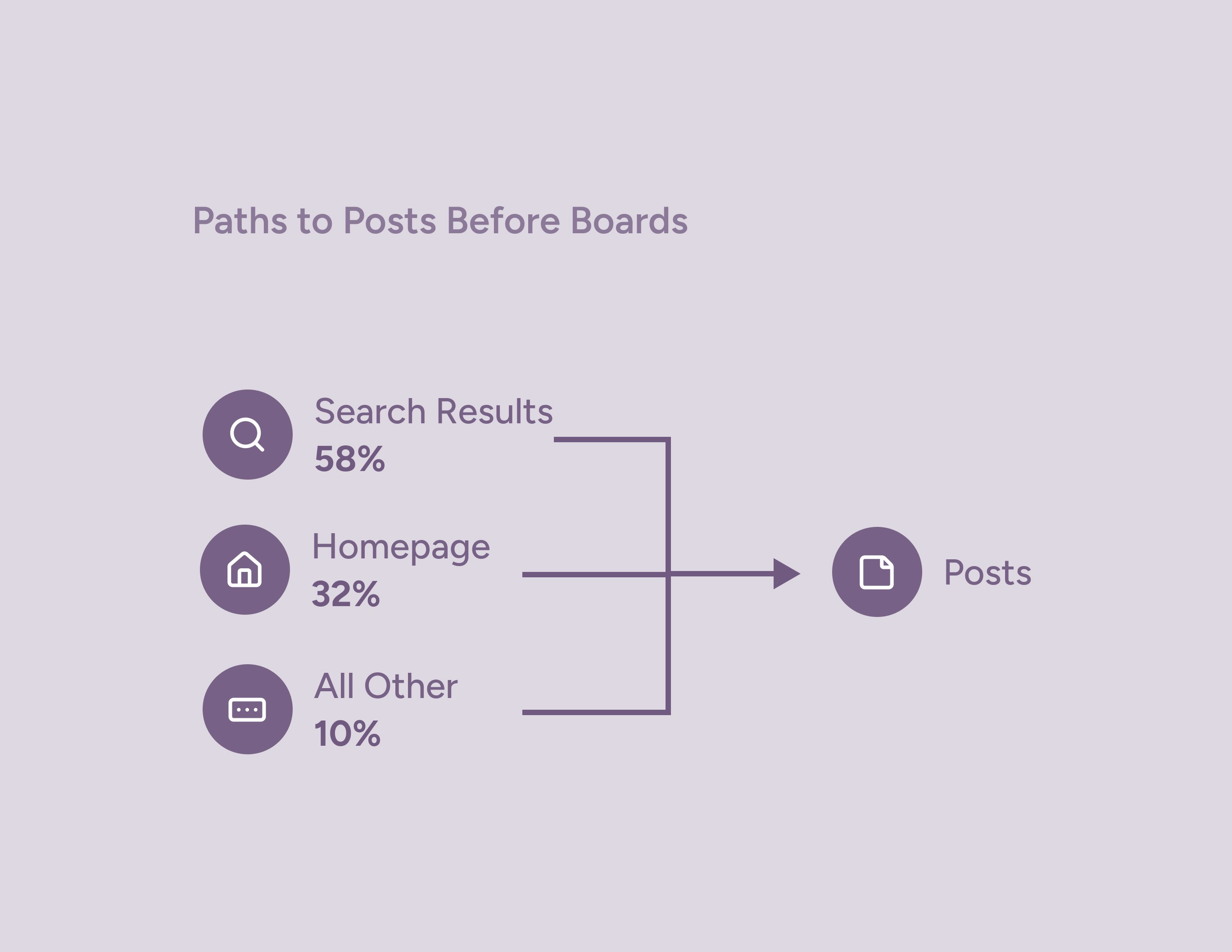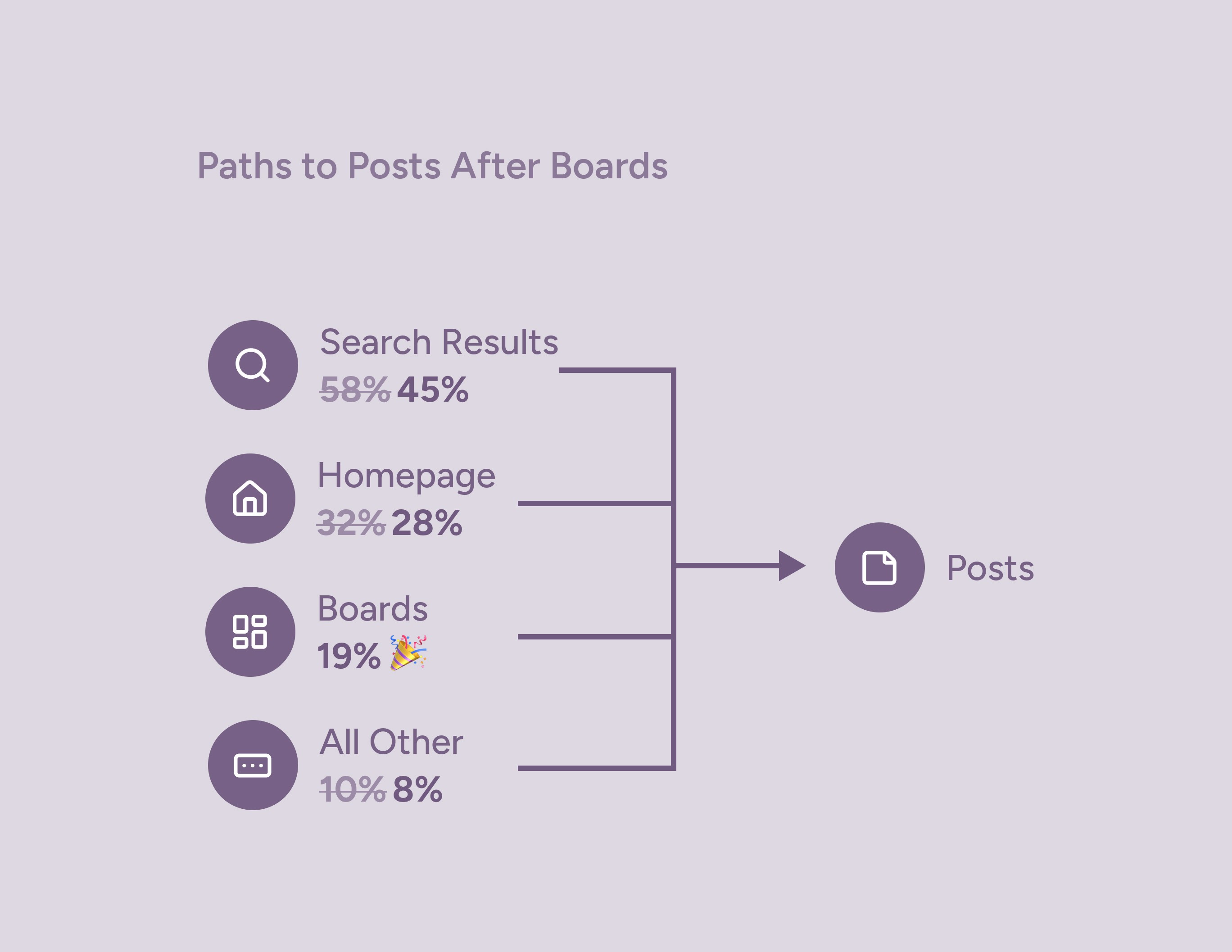 Boards shipped in mid-2025 and have seen strong adoption — over 65% of accounts are actively using them. But adoption alone wasn't the goal. The real question was whether Boards would change how users actually found and engaged with content.