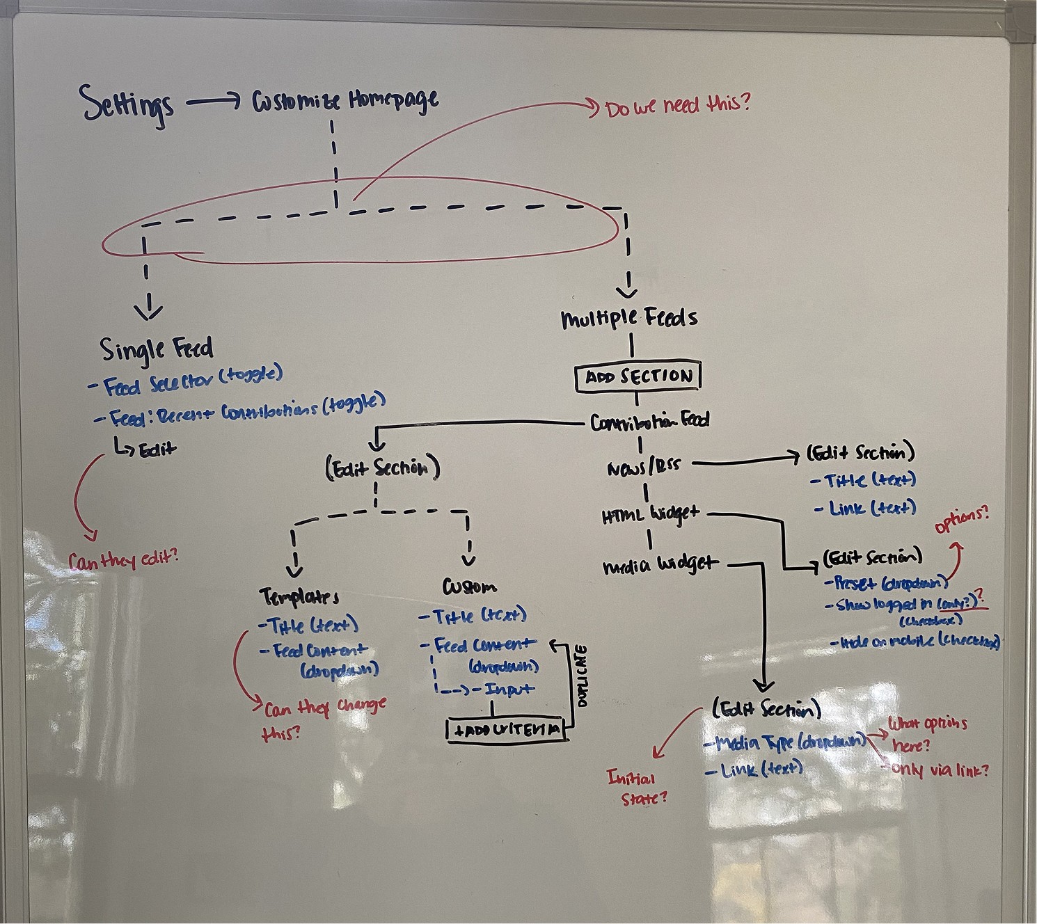 After customer interviews and internal research, a clear pattern emerged: admins needed the ability to serve content organized around how their organization actually worked. With the homepage being the most visited page and entry point to discovering content, we knew we should start there.