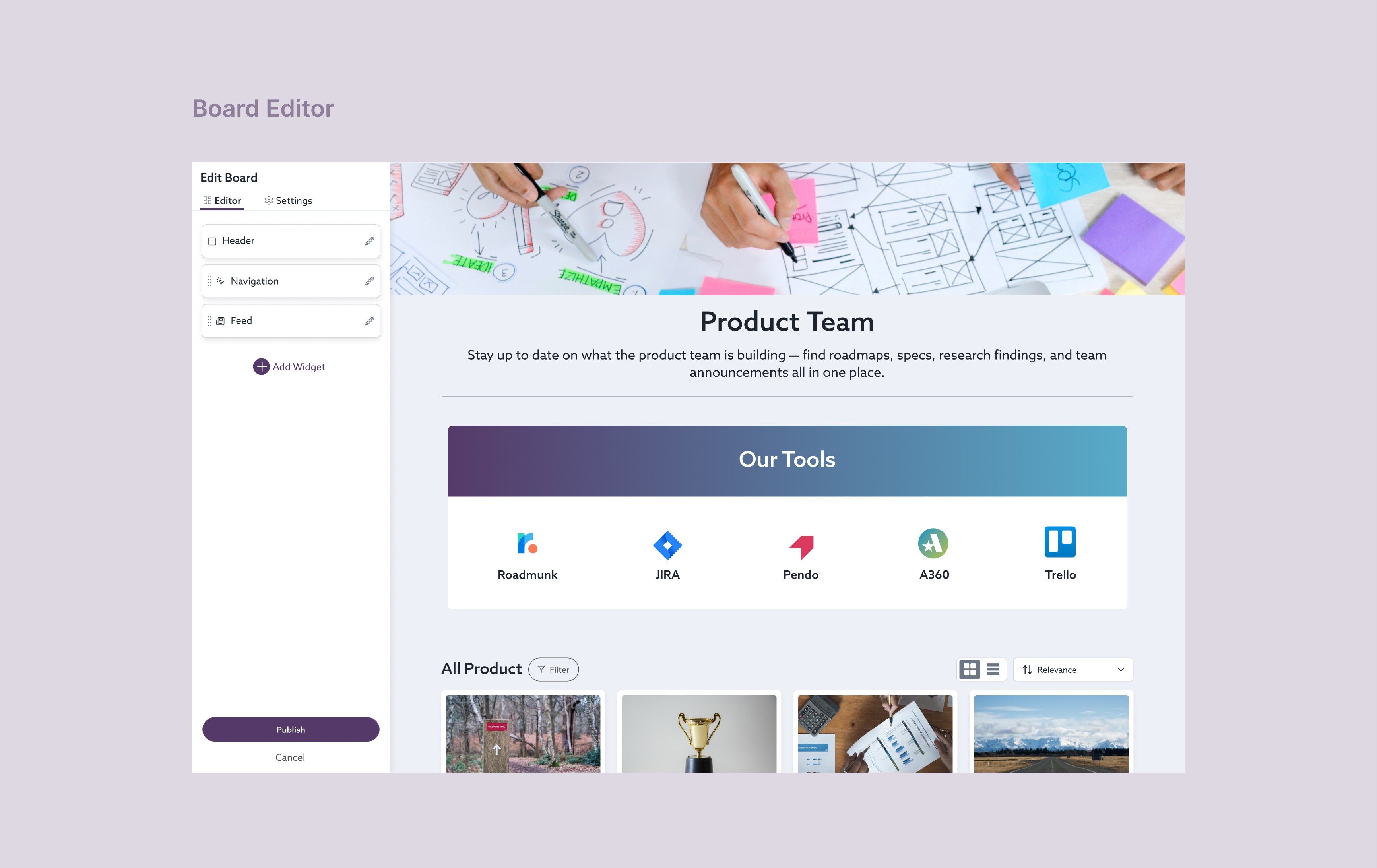 TL;DR Bloomfire is a B2B SaaS knowledge management platform used by organizations to share and discover internal content. As organizations grew more complex, a single shared homepage couldn't serve their diverse audiences — content felt irrelevant to users, and admins were powerless to fix it. I designed the solution in two phases: first Homepage Builder, a customizable homepage that saw strong early adoption, then built on that with Boards, an entirely new content type that became a primary content discovery mechanism within the platform.